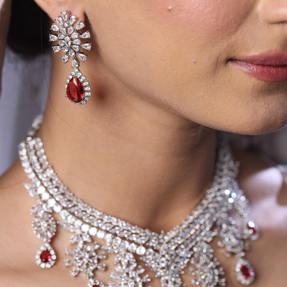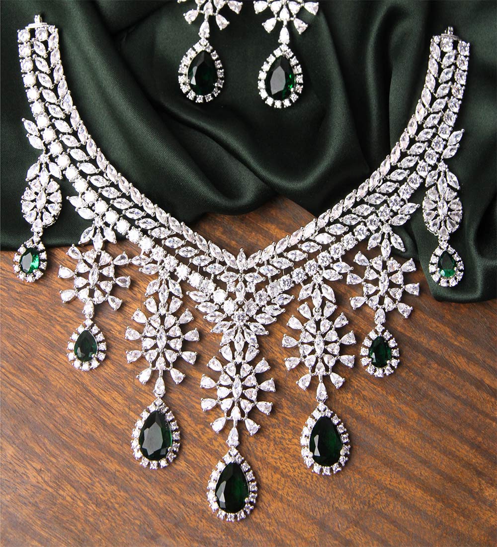 Elevate your bridal look with the Bridal Allure Necklace Set, a stunning masterpiece that combines intricate craftsmanship with premium zircon detailing. This artificial bridal jewelry set is designed to exude timeless elegance, making it perfect for brides seeking sophistication on their special day.