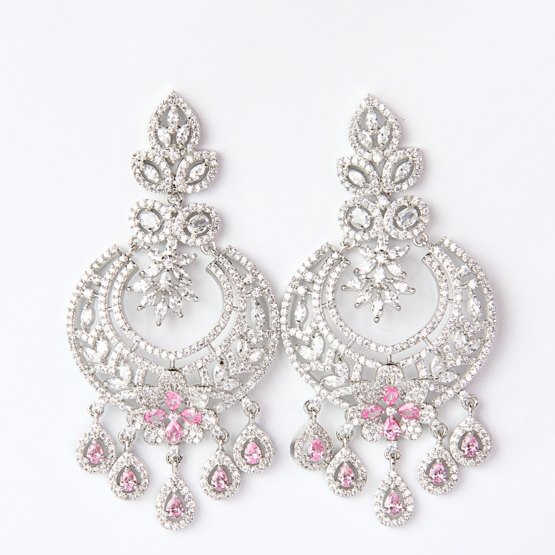 Celebrate in style with the Crystal Bloom Zircon Earrings, featuring intricate floral patterns and dazzling zircon stones. These earrings are a must-have for Eid wear, dawat jewelry, and wedding guest accessories, offering the perfect blend of elegance and charm.