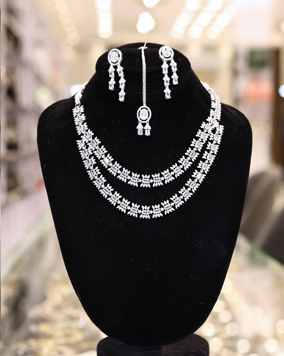 Be the first to review “Zircon Double Line Necklace Set With Tika”