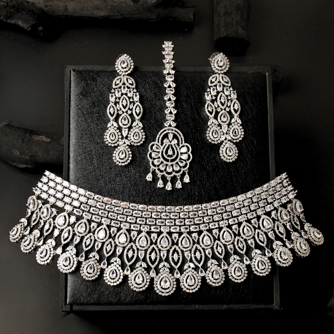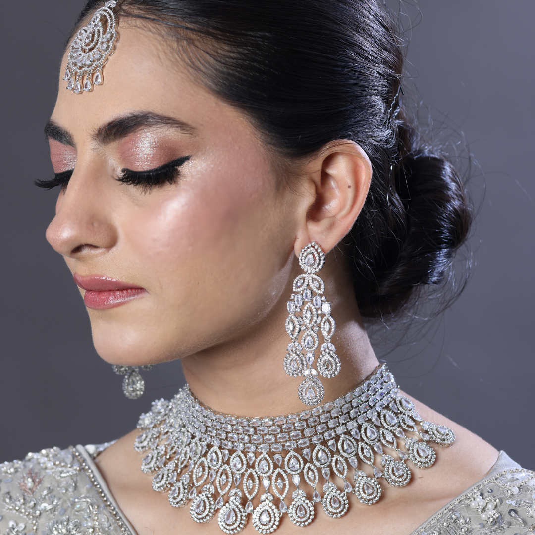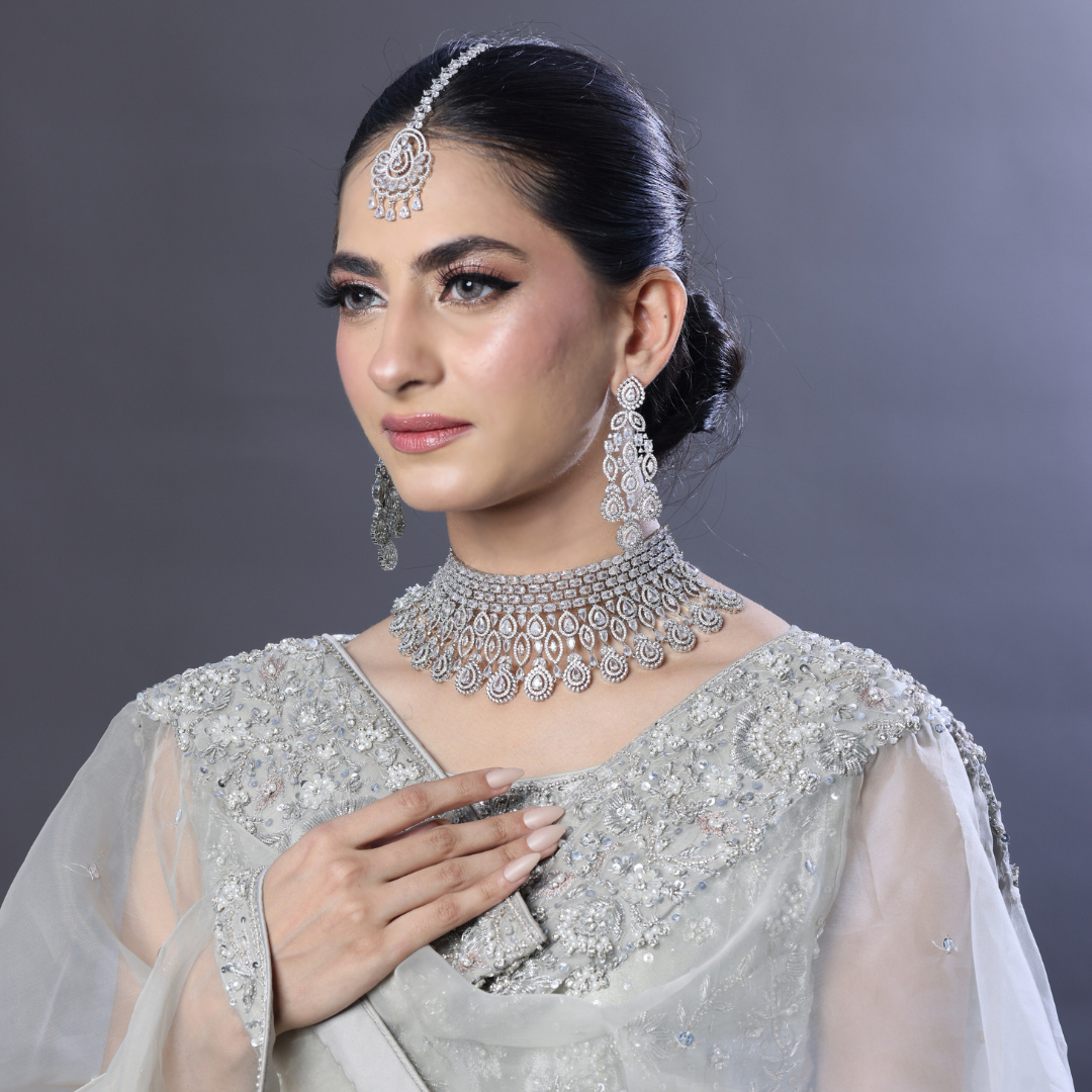 Embrace elegance with the Serenity Bridal Set, a refined collection of zircon-studded jewelry designed for brides who prefer simplicity with a touch of sparkle. This set is perfect for intimate weddings and elegant receptions.