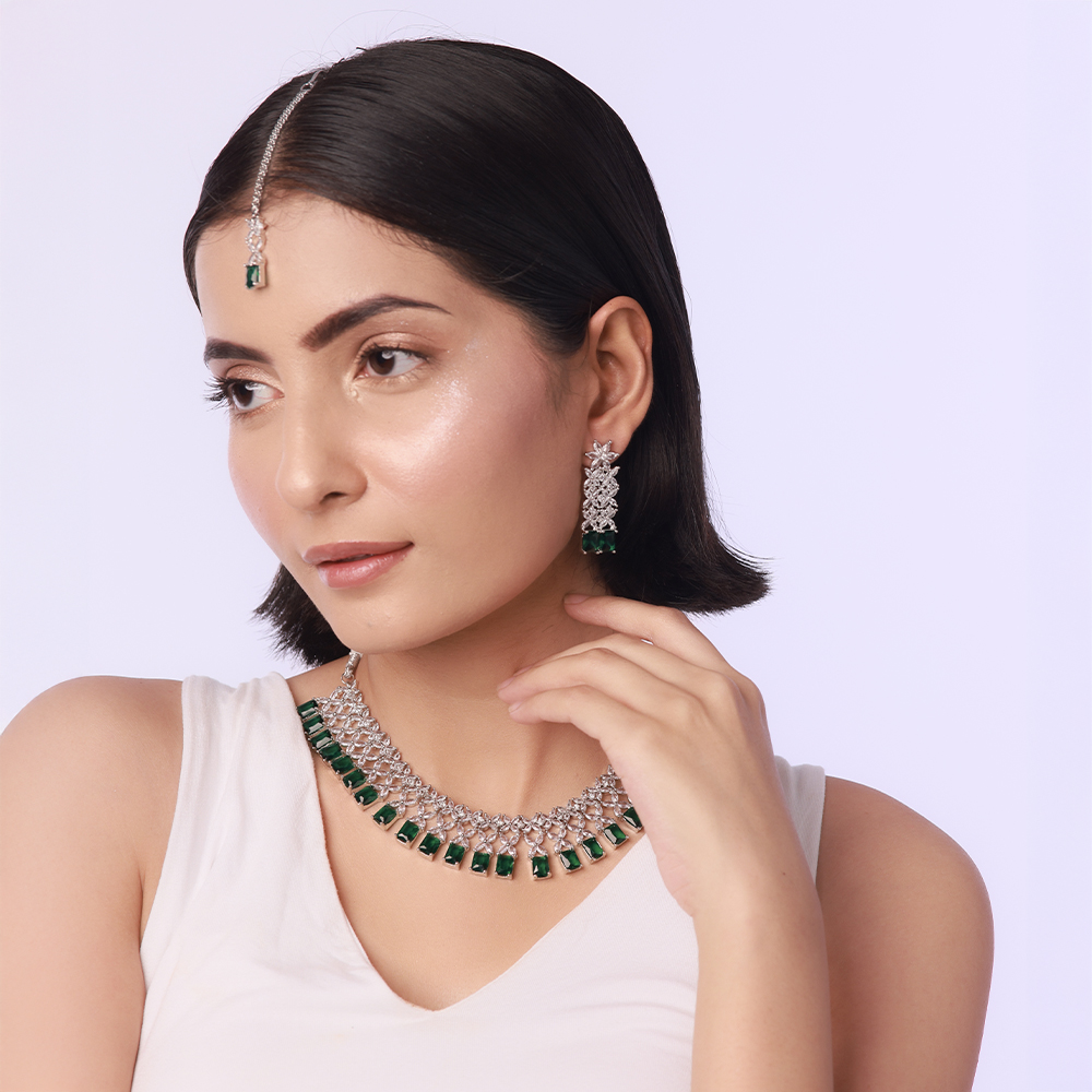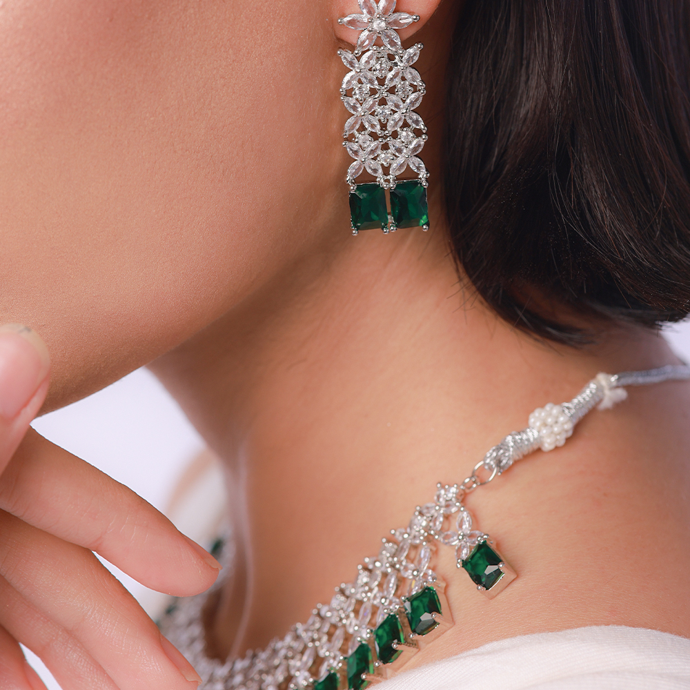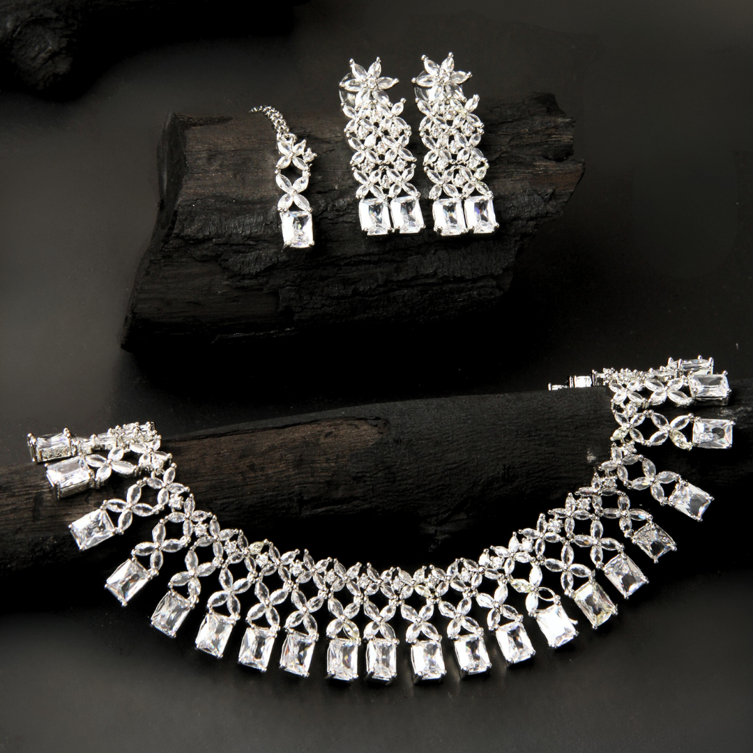 Elevate your style with the Zircon Drop Set, a dazzling combination of elegance and modern sophistication. Featuring a stunning necklace adorned with high-quality zircon stones in a graceful drop design, this set is paired with matching earrings that add the perfect finishing touch.